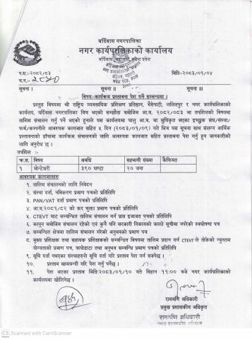 विषादि छर्ने मेसिन ६०% अनुदानका लागि प्रस्ताव पेश गर्न म्याद थप सम्बन्धि सूचना फेसबुक पेज र वेवसाइट मार्फत सार्वजनिक गरिएको छ, प्रस्ताव पेश गर्ने अन्तिम म्याद:२०८३।०१।१०