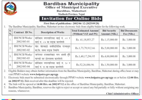 » E-bid request for various blacktop roads( published date:2082/06/12)