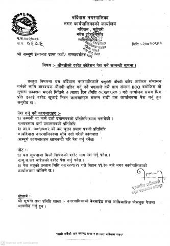 नदिजन्य पदार्थ उत्खनन्,संकलन,भण्डारण विक्रि वितरण तथा निकासी कार्यको लागि वोलपत्र आह्वान सम्बन्धि सूचना।