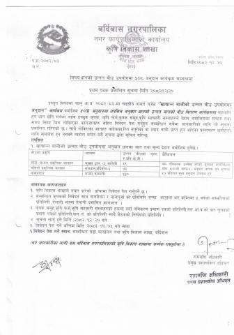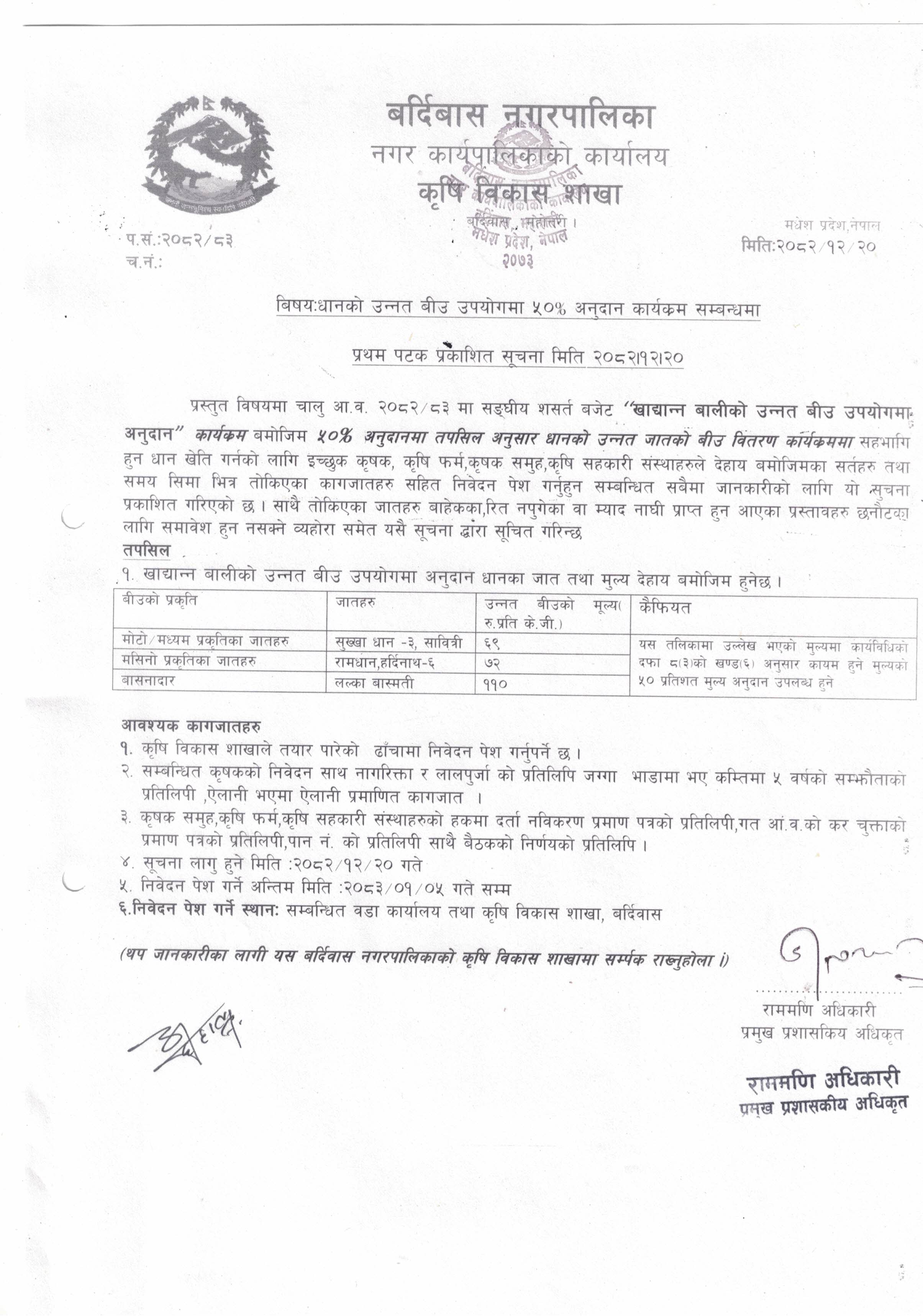 » धानको उन्नत बीउमा ५०% अनुदानका लागि प्रस्ताव पेश गर्ने सम्बन्धि सूचना।