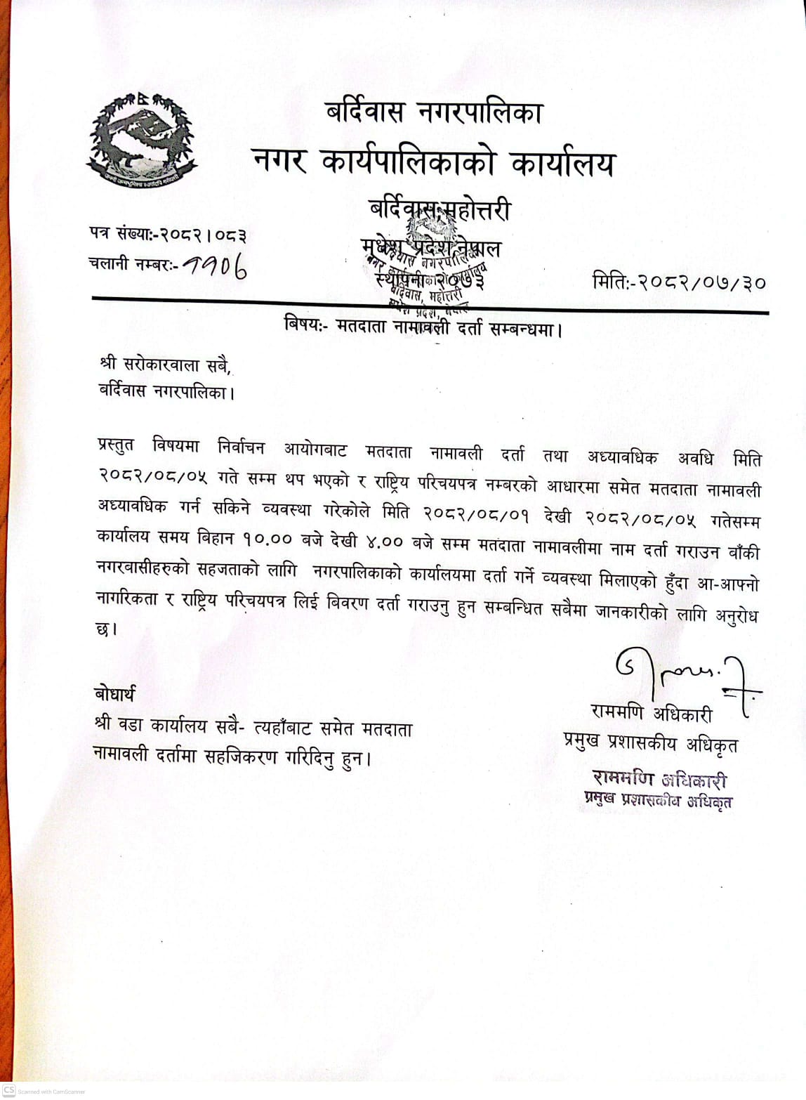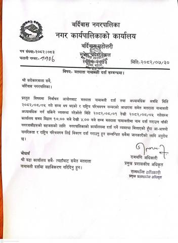मतदाता नामवली दर्ता सम्बन्धमा।