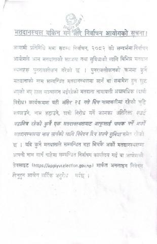 मतदानस्थल यकिन गर्ने बारे निर्वाचन आयोगको सूचना।