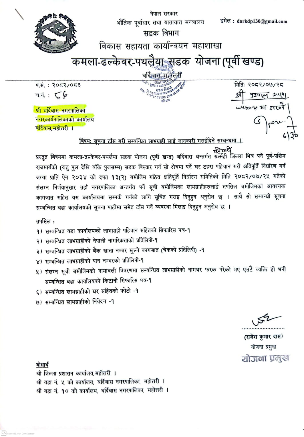 » मुआब्जा लाभग्राहिहरुको सुचि र आवश्यक कागजात सम्बन्धी सूचना।
