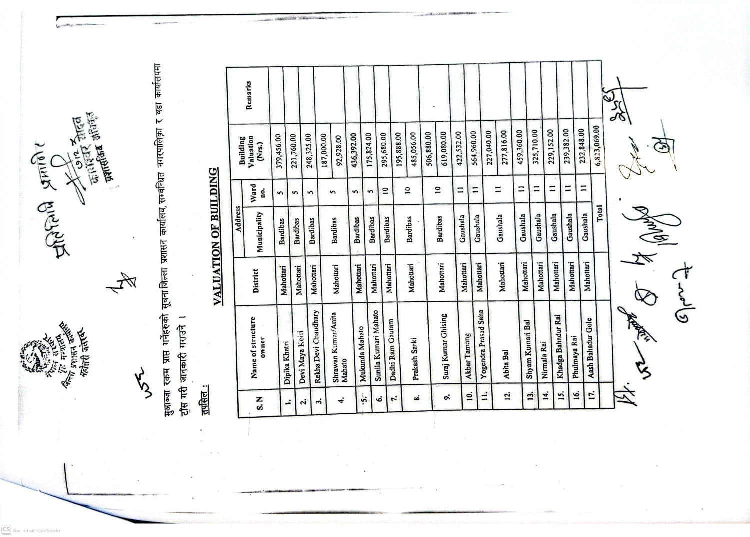 बर्दिबास नगरपालिका, नगर कार्यपालिकाको कार्यालय