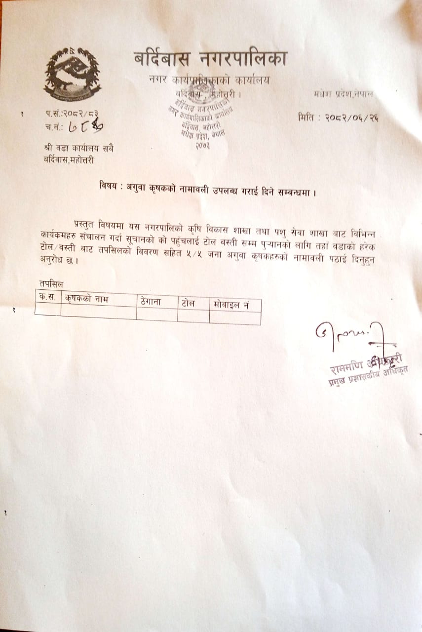 » वडा कार्यालय सबै, अगुवा कृषकको नामवली उपलब्ध गराइदिने सम्बन्धमा।