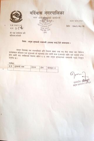 प्रस्ताव आह्वान सम्बन्धी दोस्रो पटक प्रकाशित सूचना (बर्दिबास अस्पताल वाल पार्टिशन)