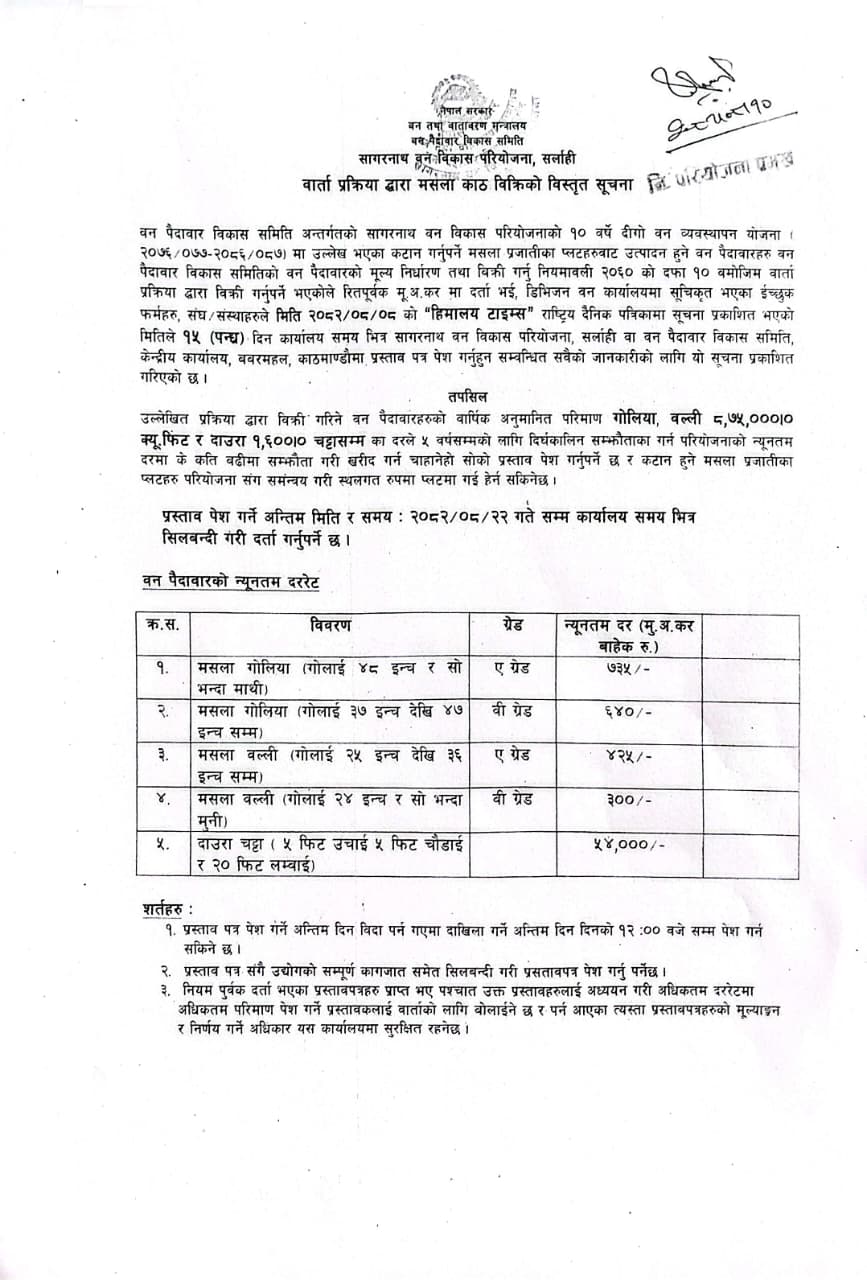 वार्ता प्रकृया द्वारा मसला काठ विक्रिको विस्तृत सूचना।