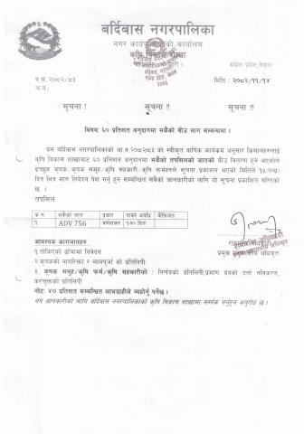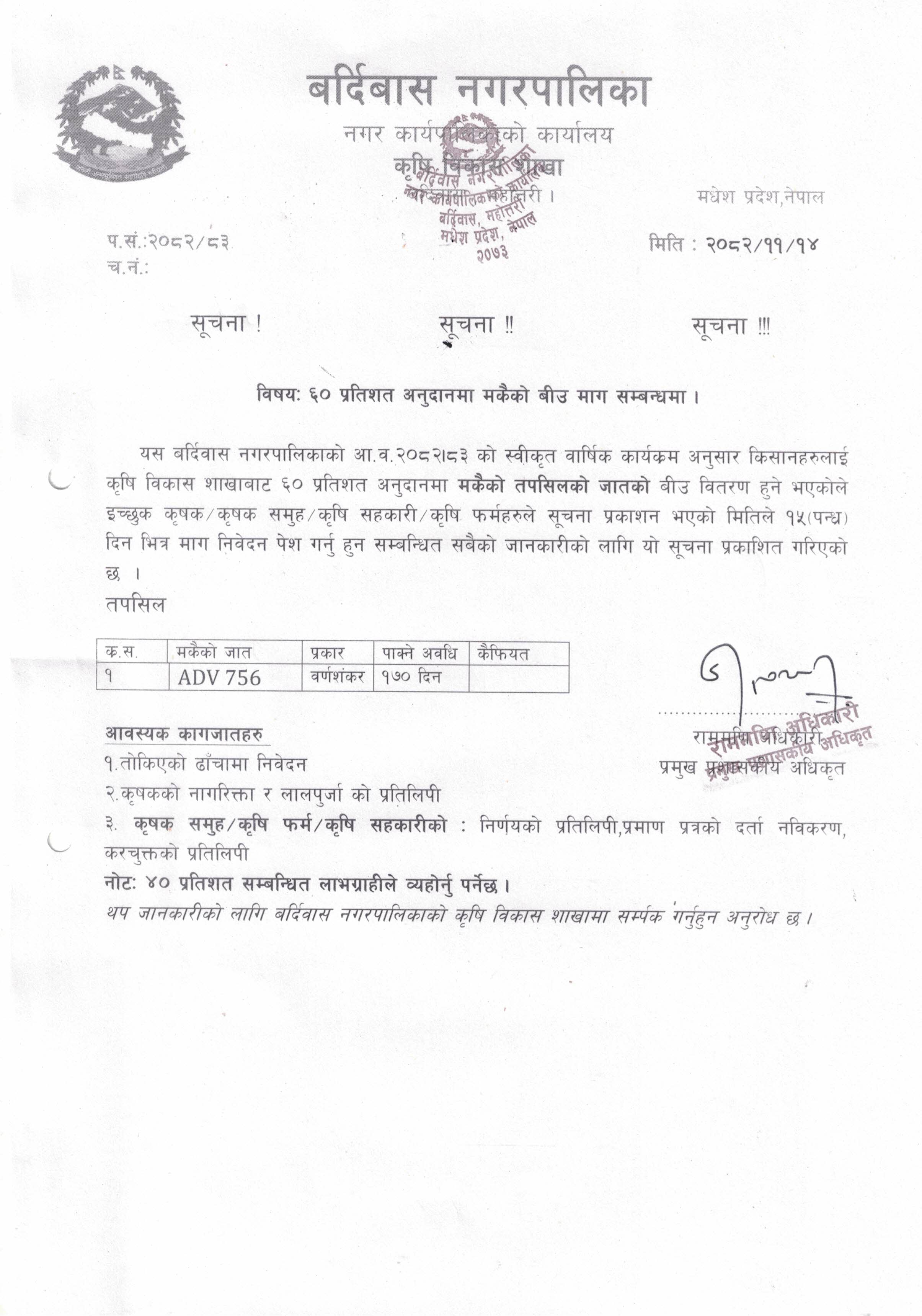 अनुदानमा मकैको बीउ माग गर्ने सम्बन्धि सूचना।