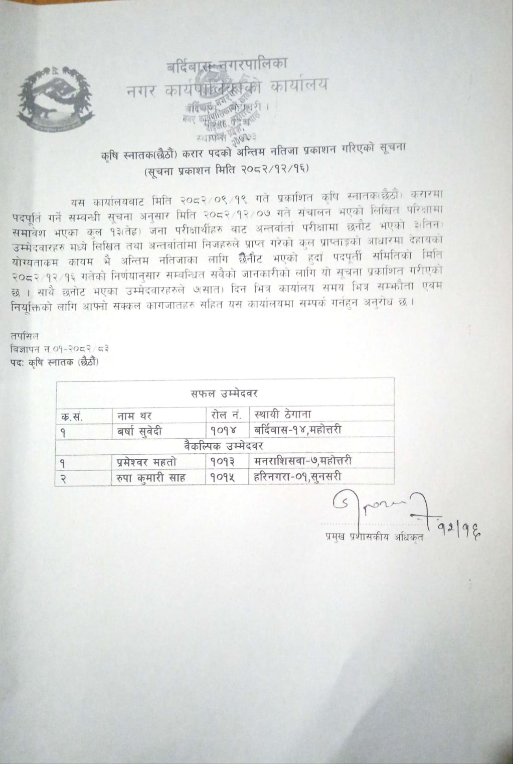 अन्तिम नतिजा प्ररकाशन(कृषि स्नातक)