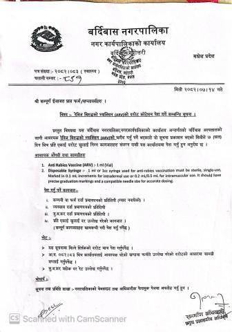 कोटेशन पेश गर्ने सम्बन्धि सूचना।(रेविज विरूद्दको भ्याक्सिन)