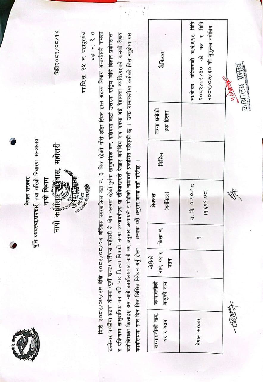 » जग्गाधनी र मोहीको नामवली प्रकाशित गरिएको सम्बन्धि सूचना