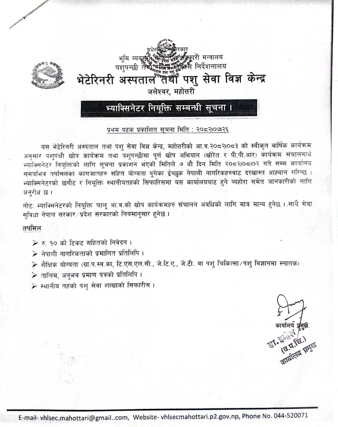 भ्याक्सिनेटर नियुक्ति सम्बन्धि सूचना।