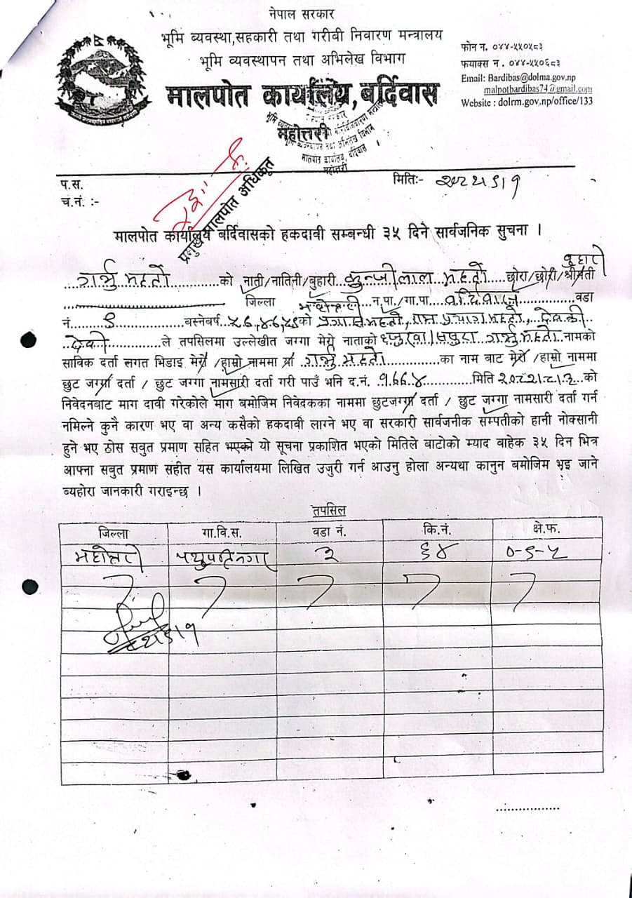 हकदावी सम्बन्धि ३५ दिने सार्वजनिक सूचना।