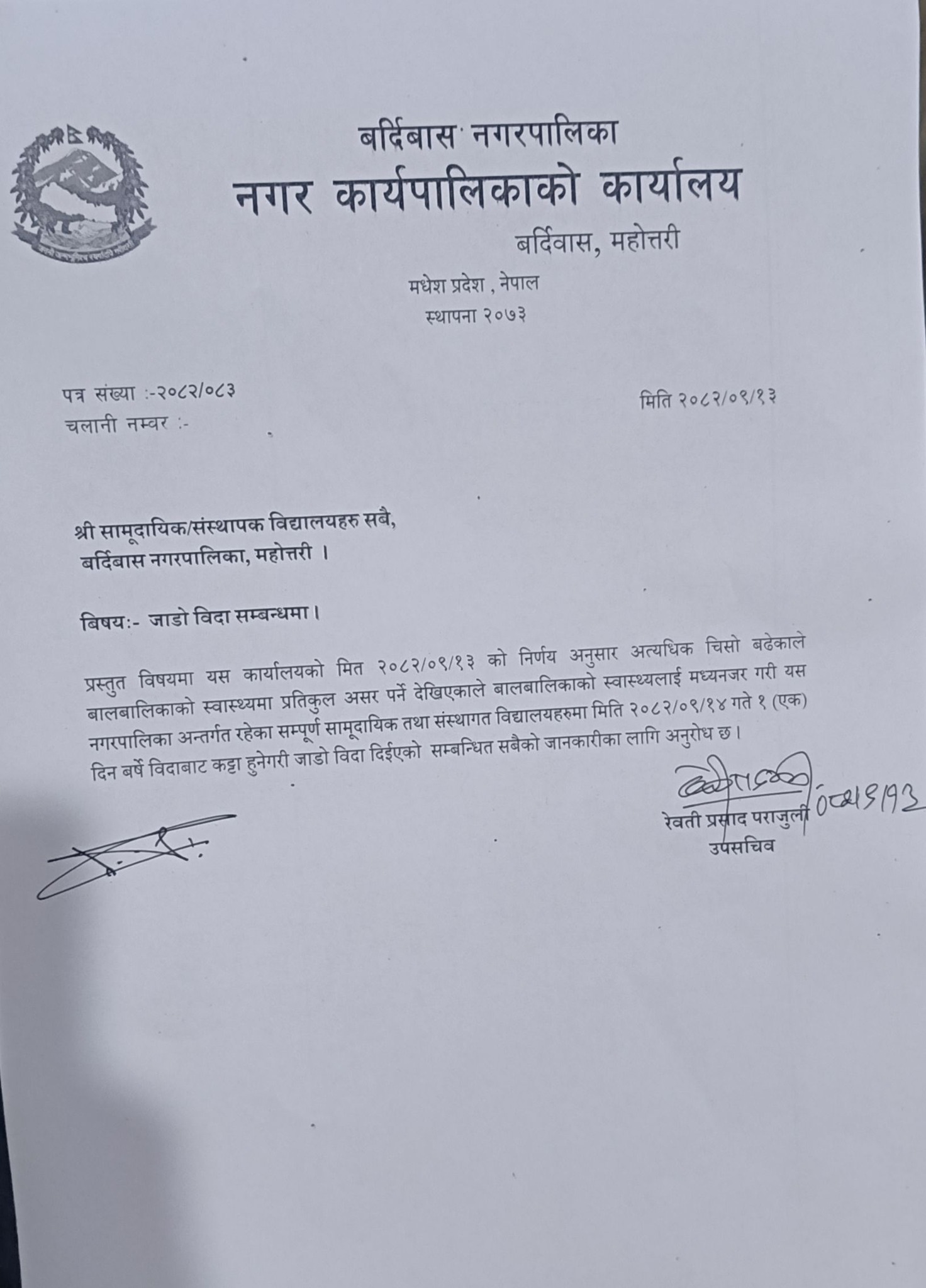 जाडो विदा सम्बन्धमा।