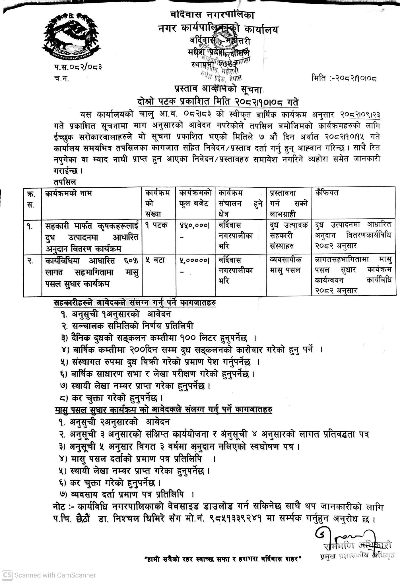 » दुध उत्पादन र मासु पसल सुधारका लागि सहकारीहरुलाई अनुदान सम्बन्धि प्रस्ताव आव्हानको सूचना।(दोस्रो पटक प्रकाशित)