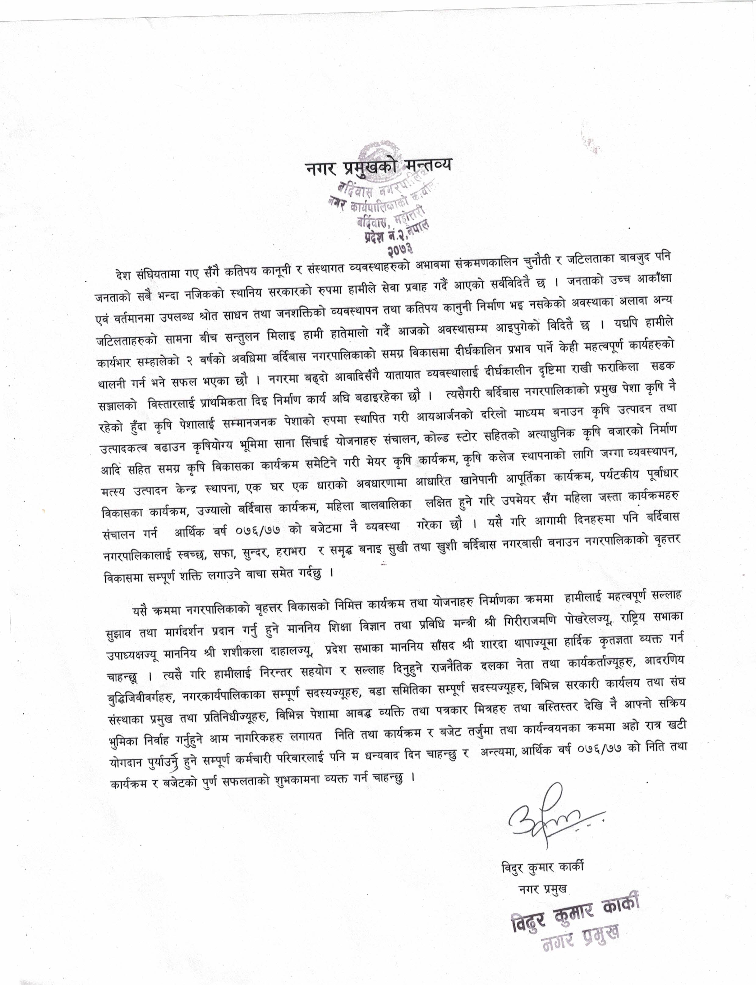 बर्दिबास नगरपालिका, नगर कार्यपालिकाको कार्यालय