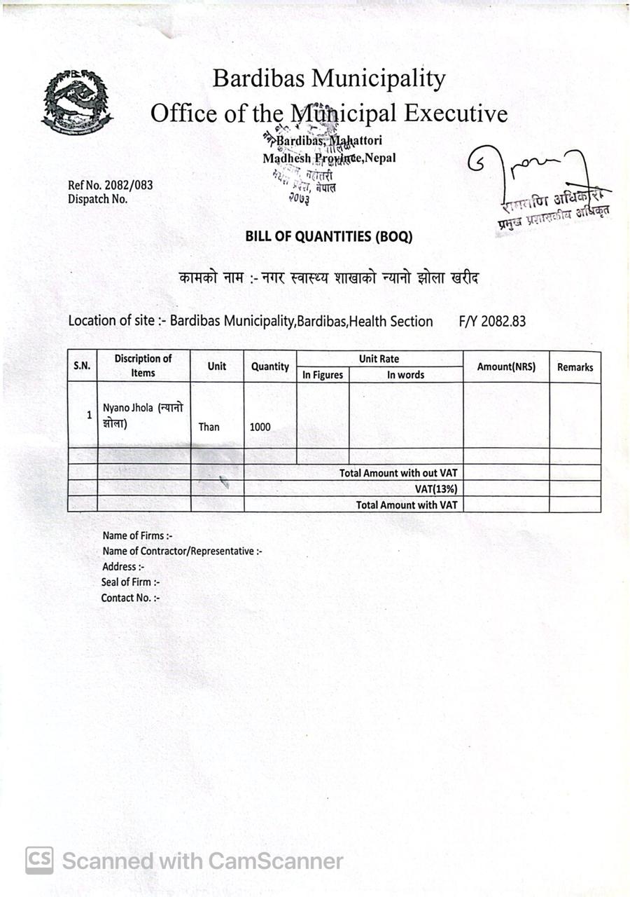 न्यानो झोलाको दररेट कोटेशन पेश गर्ने सम्बन्धि सूचना।